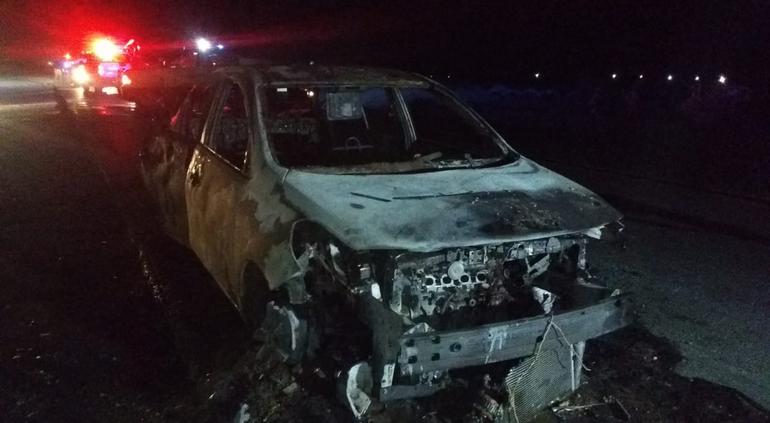 Finalmente en la carretera que conduce al puente internacional Santa Teresa registraron la quema de una camioneta.